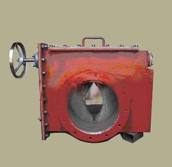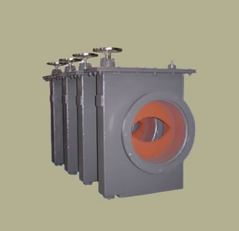 3. 内置式全封闭螺杆传动调节闸板,结构紧凑,并设计有标尺指示闸板的启闭调节位置。