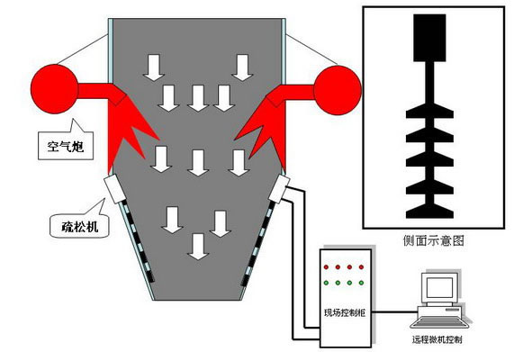 ⑤空气炮与疏松机配合使用,则效果更佳。