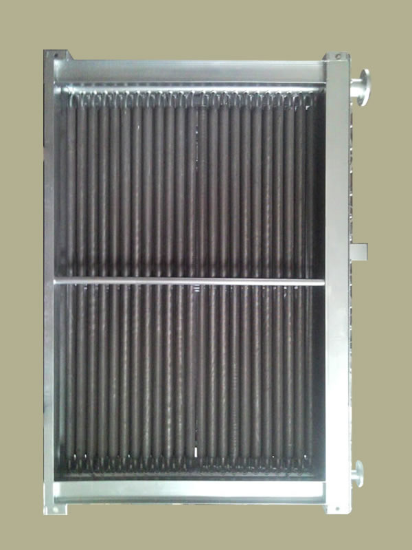 暖风器是交叉排列的几组螺旋翅片管束,通过上下联箱联接后安装在金属框架内,然后根据风道尺寸,由单片或几片并联组成的框架式结构,它具有传热效果好,阻力小,坚固耐用,安装维修方便等特点。